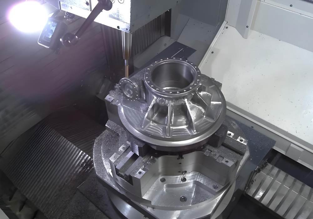 Pemesinan simultan 5-sumbu mencapai toleransi rentang mikron pada komponen mesin CNC kedirgantaraan ini. Presisi ini penting untuk memastikan pengoperasian yang sepenuhnya bebas kebocoran dan andal di ruang hampa yang keras dan menuntut.